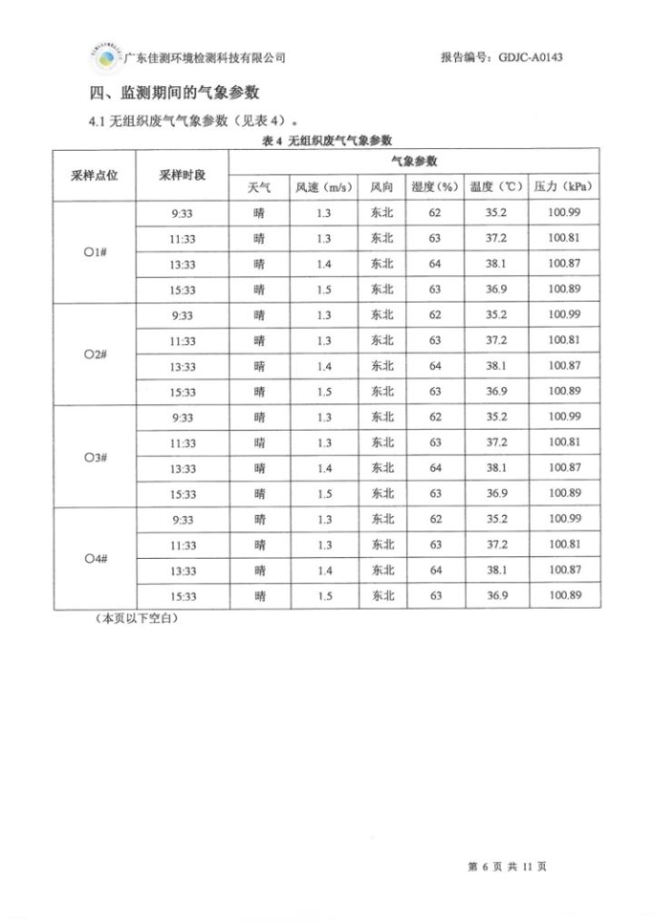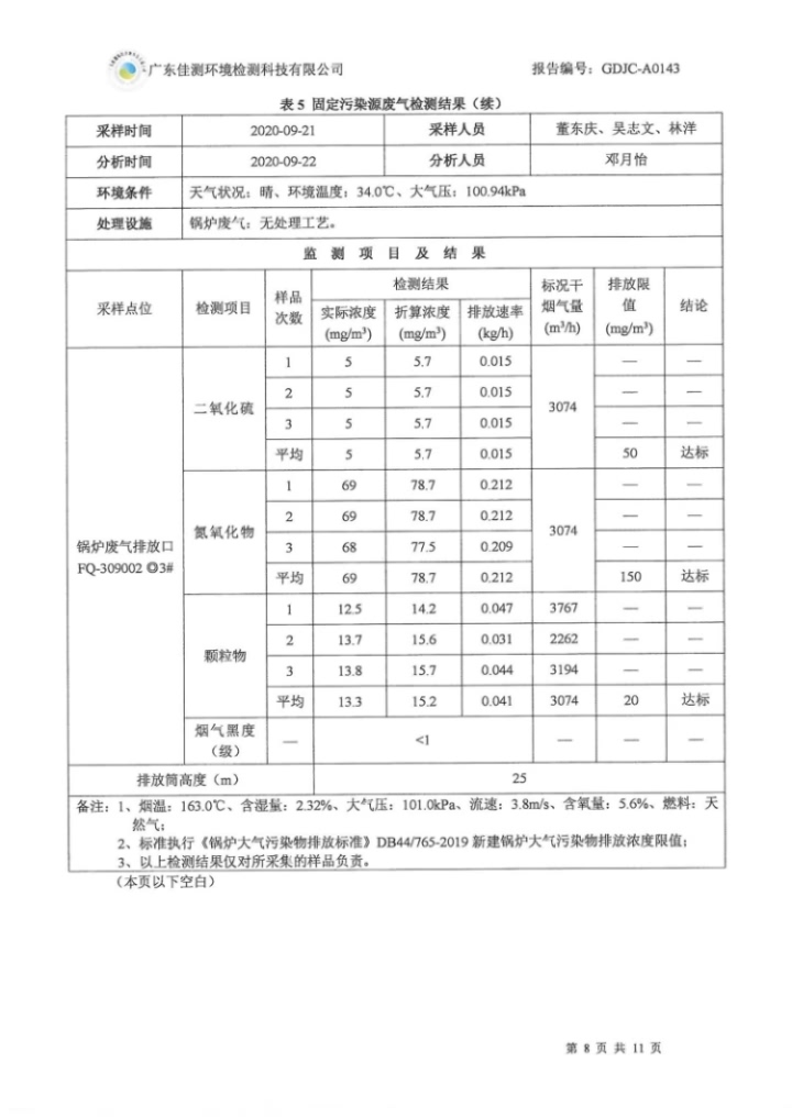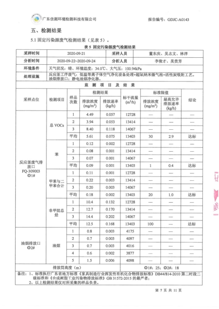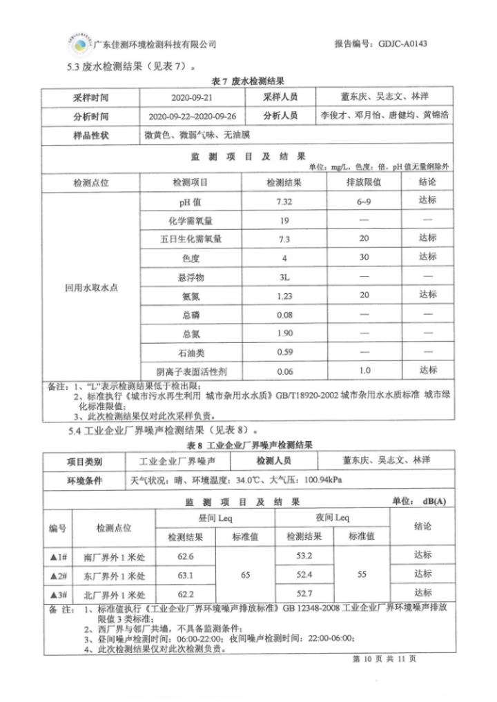 9月份 2020第GDJC-A0143号 开云手机平台废气、废水、噪声监测